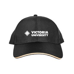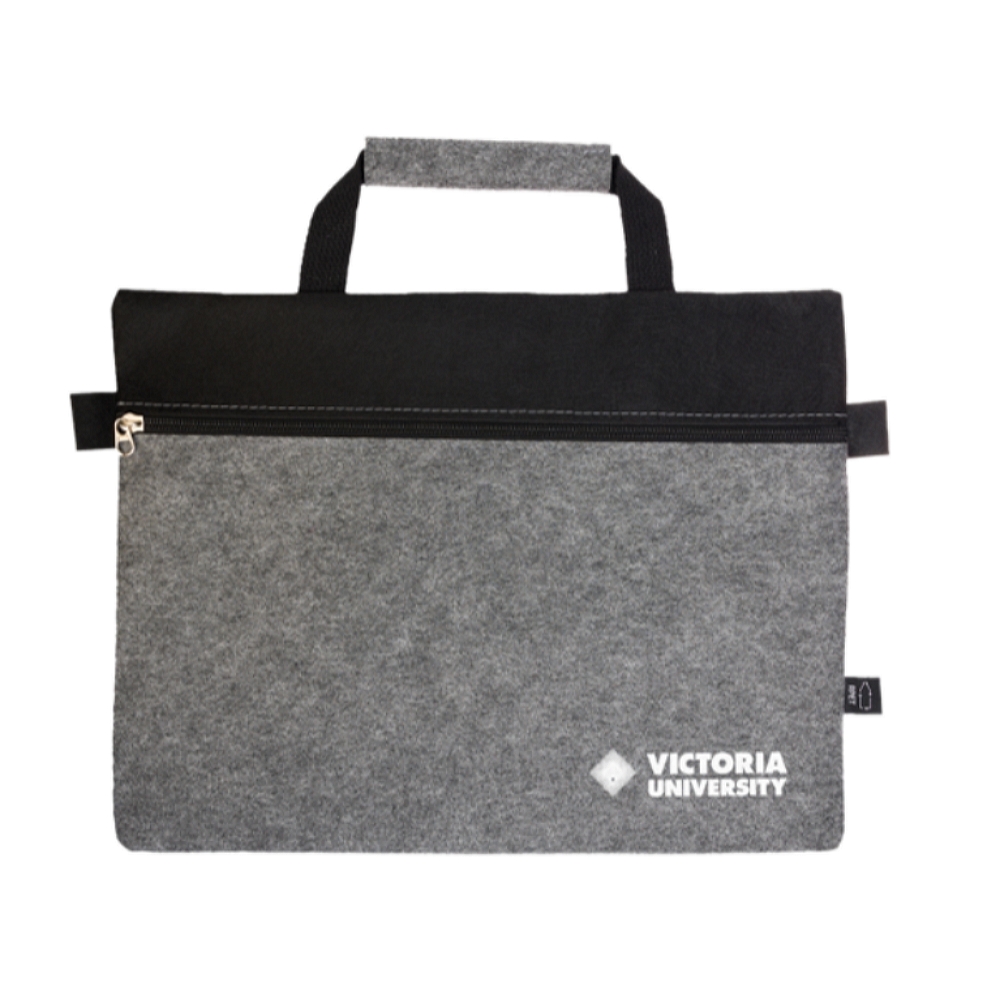 The white Victoria University logo alongside the thrive* logo stands out on the front panel via a high quality digital transfer.